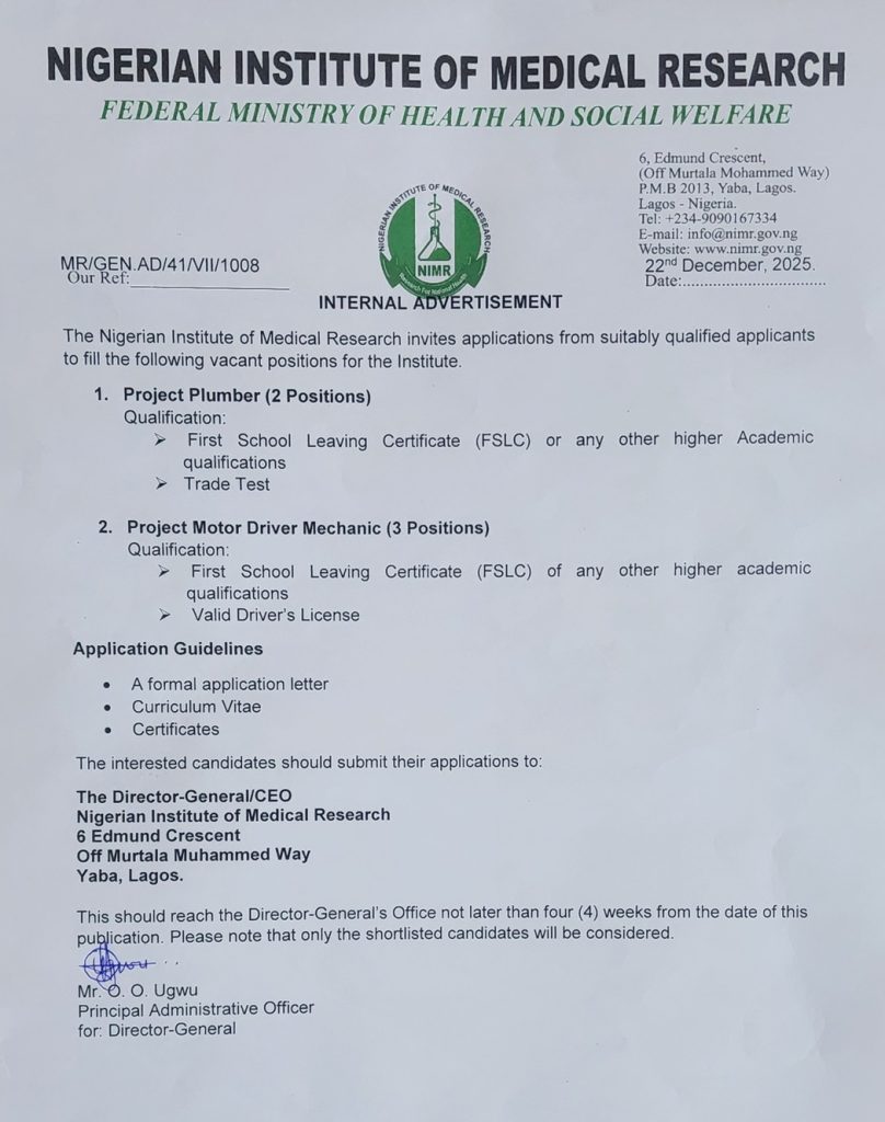 Internal Advertisement: Malaria Vector Surveillance PIs